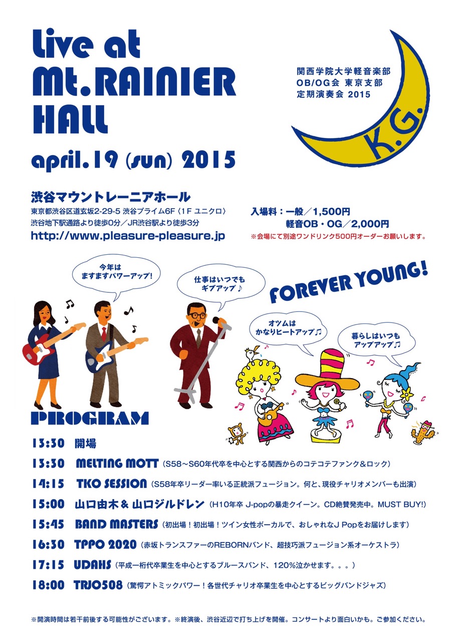 今週日曜日に迫りました、関学軽音OB/OG会・東京支部の定期演奏会!